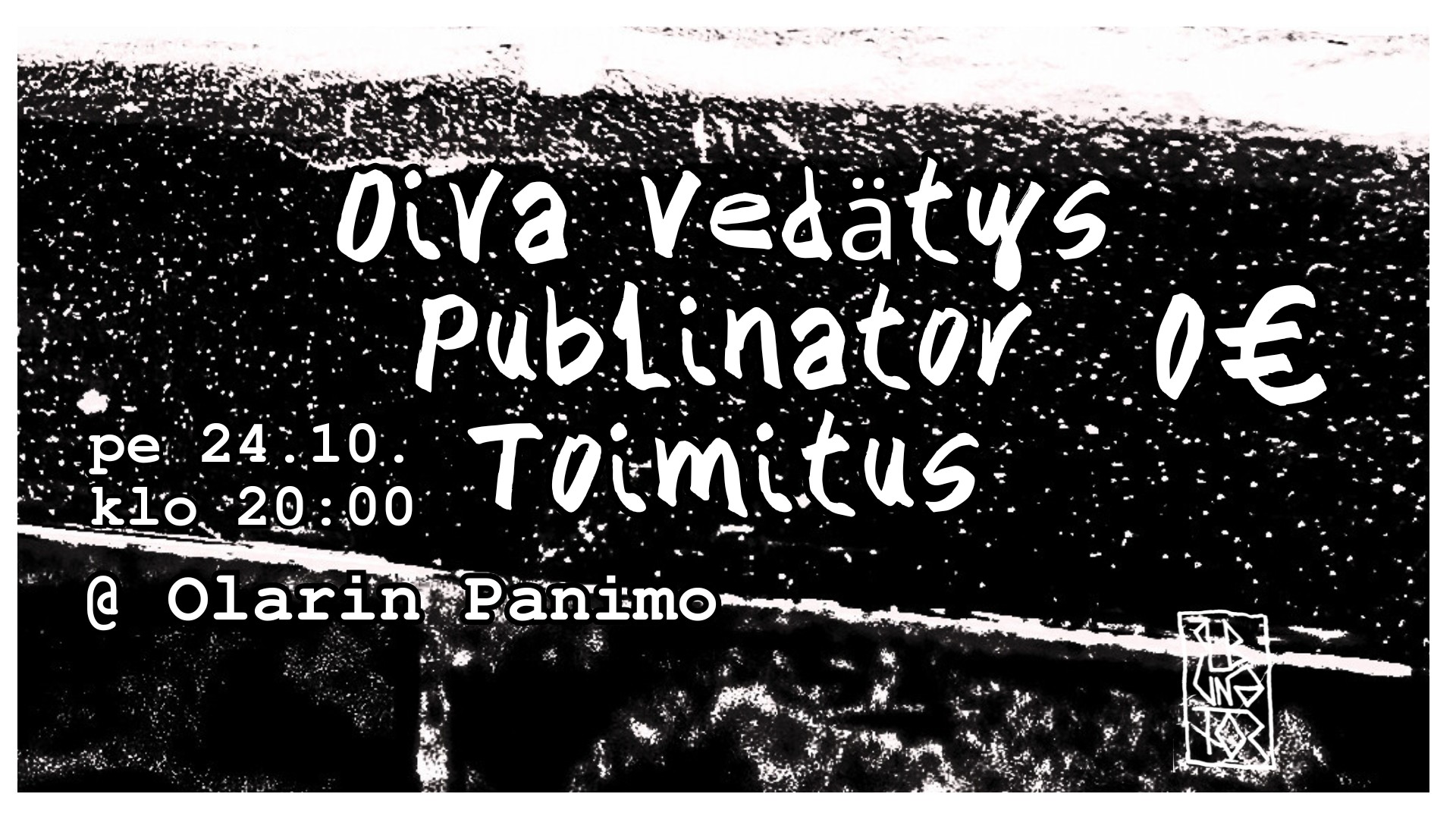 20:30 Toimitus 21:30 Publinator 22:30 Oiva Vedätys 0€ / ilmainen Oiva Vedätys on paskasta elämästä räppäävä vanha mies. Helsinkiläinen Publinator […]