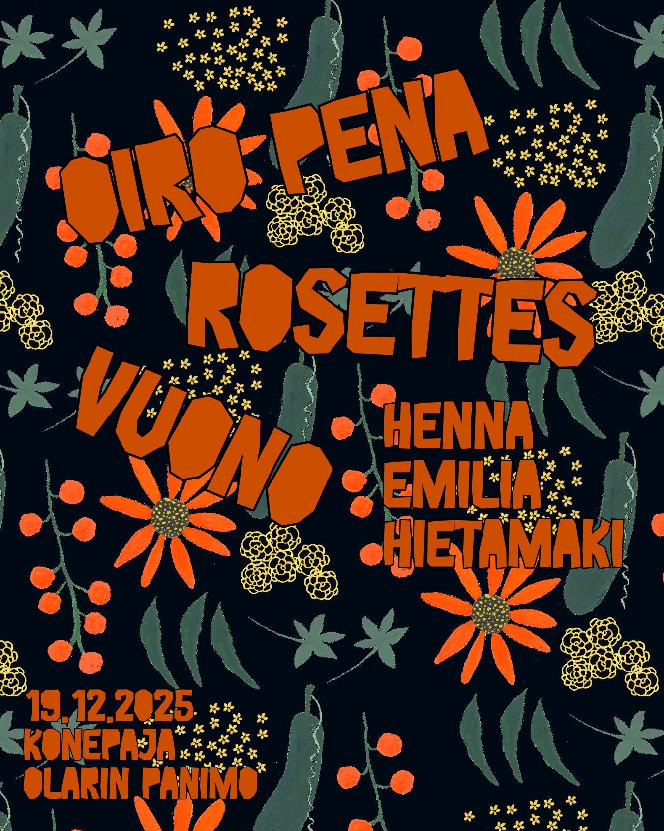 YLLÄTYS! Myös Rosettes osallistuu ensi perjantain kemuihin. 19.12.2025 Olarin panimo, Konepaja. Liput 15€ (MobilePay). 19:30 Henna Emilia Hietamäki20:30 Vuono21:30 Rosettes22:30 […]