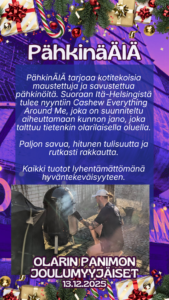 Tule siis nappamaan persoonallisimmat joululahjat näiltä pientuottajilta ja -tekijöiltä!