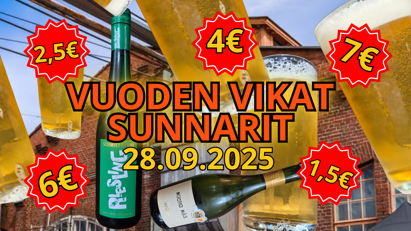 Sen kunniaksi juhlistetaan vikoja sunnareita halvoilla hinnoilla. Eli nämä hinnat voimassa VAIN SUNNUNTAINA 28.9. klo 14:00-22:00 (takeaway 21:00 asti)